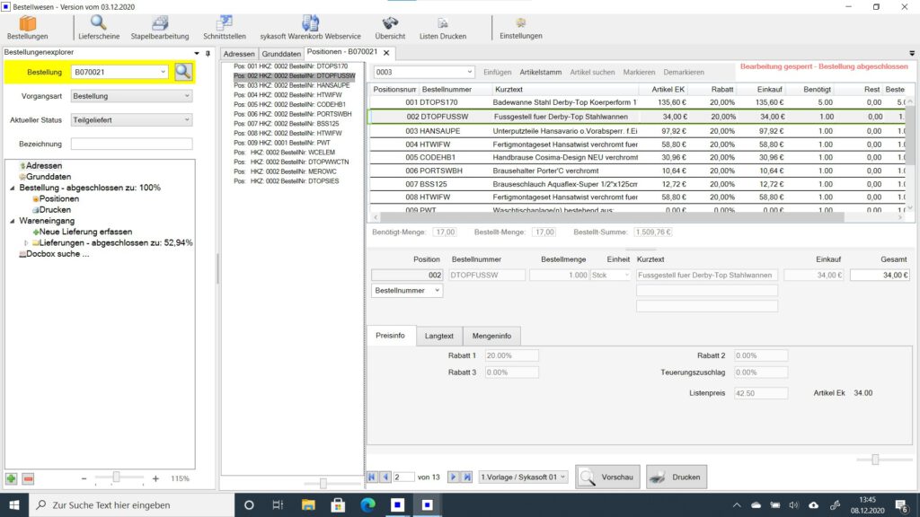 Bestellwesen – Bestellungen und Preisanfragen aus Projekten, Regieaufträgen und Lager. Mit Preisvergleich verschiedener Lieferanten. Online-Bestellung über UGL. Kontrolle des Waren-eingangs: Material- und Rechnungs-Controlling. Bestellautomatik für Lageroptimierung. Finanz-planung und Bestellüberwachung. Sparen Sie Geld beim Einkauf!