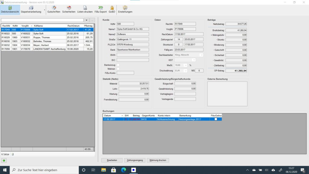 Debitoren – Verwaltung von Ausgangsrechnungen, Mahnungen in verschiedenen Mahnstufen, Mahnvorschlagslisten, Überweisungsträger, Statistiken. Mit Schnittstelle zu FIBU sowie zu Projekt-Abschlagsrechnung. Verbessern Sie die Zahlungsmoral Ihrer Kunden!