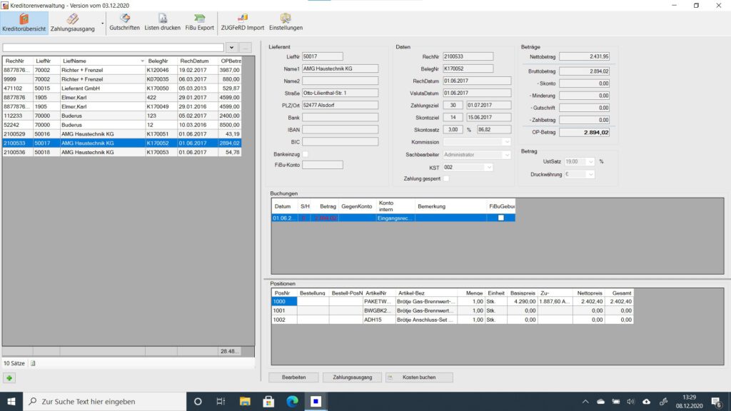 Kreditoren – Verwaltung von Eingangsrechnungen, Zahlungsvorschlagsliste, Überweisungsträger, Scheck, E-Überweisung, FIBU-Schnittstelle und Buchen in Bestellwesen. Optimieren Sie Ihre eigenen Zahlungen!
