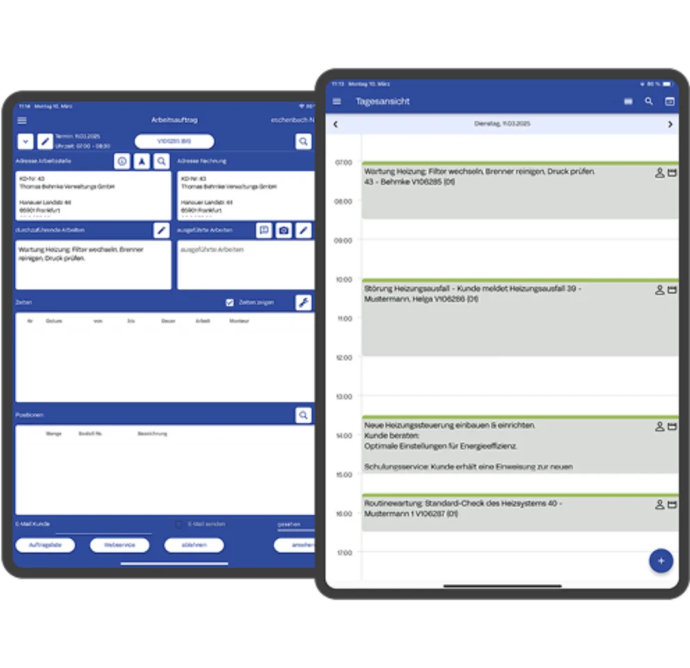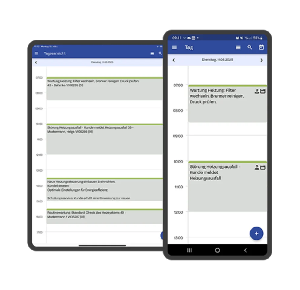 Mit der neuen Terminplaner-Erweiterung haben Sie alle Einsätze immer im Blick – egal ob im Büro, auf dem Tablet oder Smartphone. Dank der automatischen Synchronisation sind Ihre Termine jederzeit aktuell.