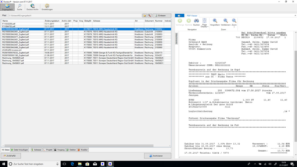 Bild: sykasoft Docbox Archiv von ZUGFeRD Rechnungen.